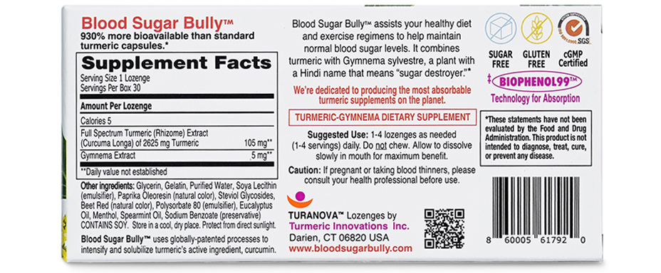 The best part is that Blood Sugar Bully™ comes in the form of a lozenge that slowly melts in your mouth. It’s a tasty treat on the go with extra health perks!